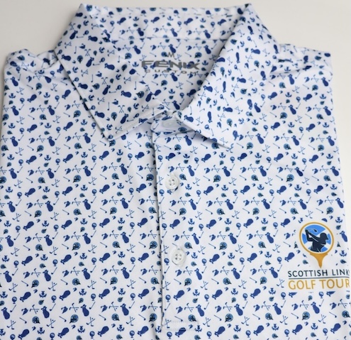Created exclusively for gifting to Scots Golf Tours’ high-end clients, this limited-edition polo blends premium performance with refined design. Featuring a bespoke print that subtly incorporates the Scots Golf Tours logo, it offers a sleek, modern look that honours the heritage of Scottish golf. Lightweight, breathable, and effortlessly stylish—this is more than a polo, it’s a statement of appreciation.